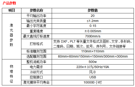 電光轉換效率高,采用風冷冷卻方式,耗電量小,整機體積小,輸出光速質量好,可靠性高,使用壽命可達10萬個小時。可雕刻金屬材料和部分非金屬材料,主要應用于對深度、光滑度、精細度要求 較高的領域