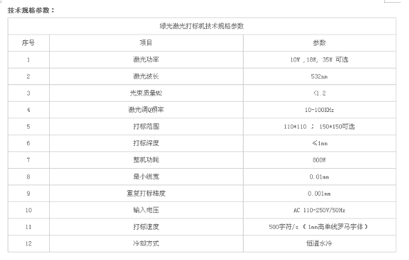 532nm輸出波長減少了對加工件的熱影響;振鏡式高精度打標頭,打標效果精細并可重復加工;高精度細致光斑保證打標結果的完美;打標過程非接觸,打標效果永久性。